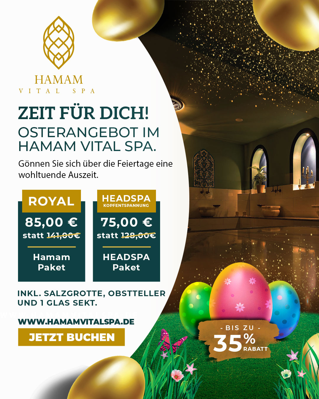 Reservieren Sie Ihren Hamam-Termin im Hamam Vital Spa jetzt einfach und schnell online – direkt über unser Buchungssystem.